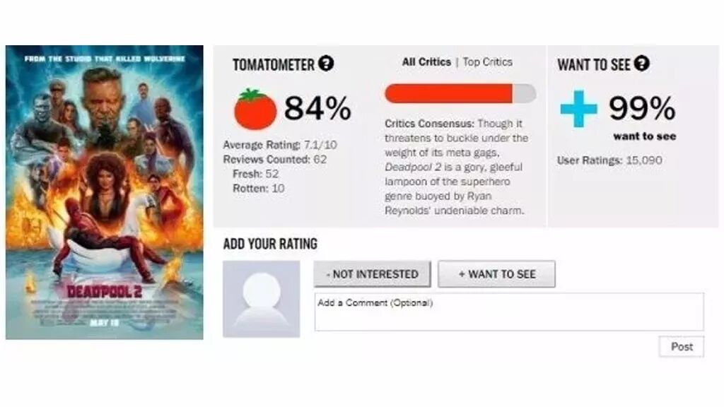 这部电影的 R 级版此前在北美上映时,就已获得了不菲的成绩,烂番茄新鲜度高达84%。