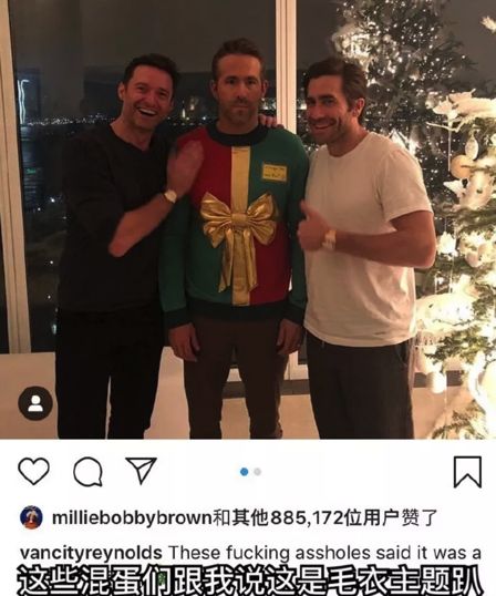 就连自家老婆,Blake Lively也没逃过调侃,不过据说她也有亲自出境客串了《死侍2》,但至今无人发现。