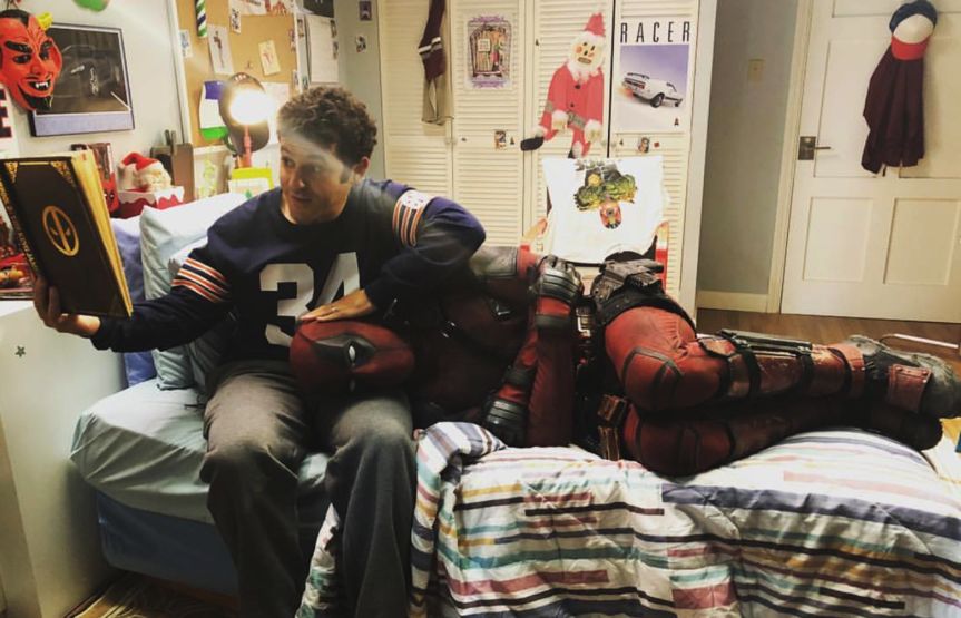 当看到弗雷德坐在床上,听死侍给自己“温柔”地讲述那些“小贱贱故事”时,再如何温馨的画面也变得好笑起来,但一种奇妙的家庭感却油然而生了。