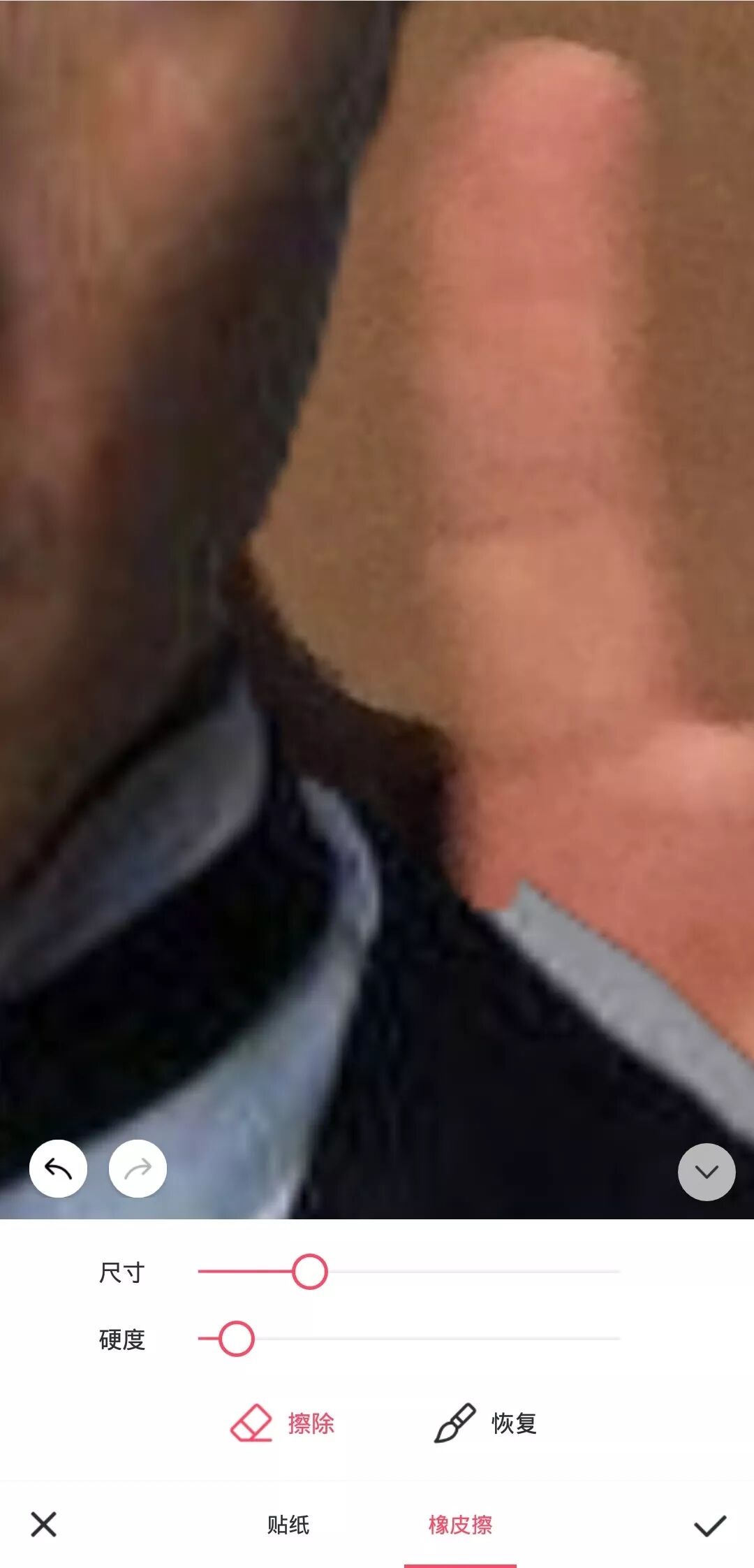 然后,可以用橡皮功能抹掉多余的部分,就像平时我们在PS里面绘制图层蒙版一样的操作。