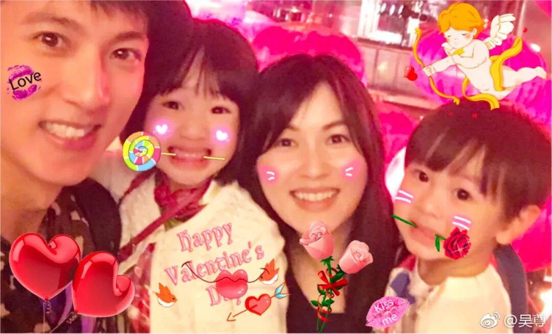 吴尊的全家福也很随性,一家四口挤在一张大头照里,吴尊还调皮的为所有人加上了小贴纸,每个人的眼神里都透漏着属于家的情感。