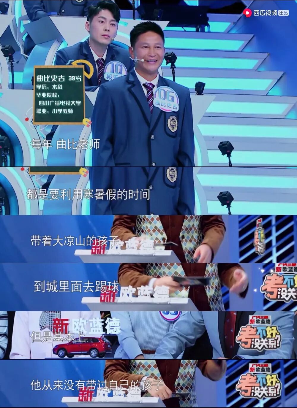 比方有一个爱踢足球的爸爸,去偏远山区教大凉山的孩子,经常用寒暑假带孩子去城里看足球。主持人问,你带过自己的儿子去过吗?爸爸说:没有,因为机会很难得,还是想照顾山里的孩子。