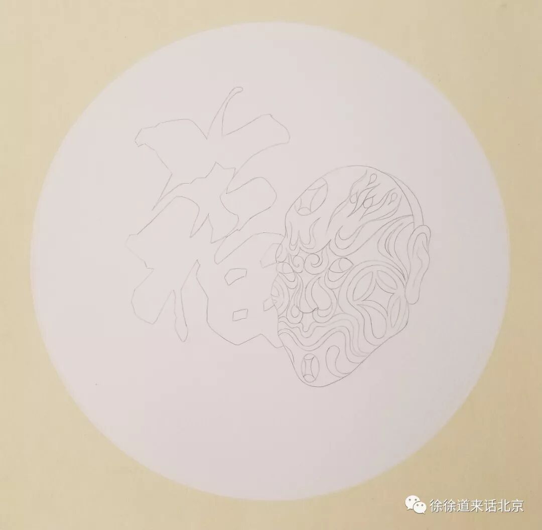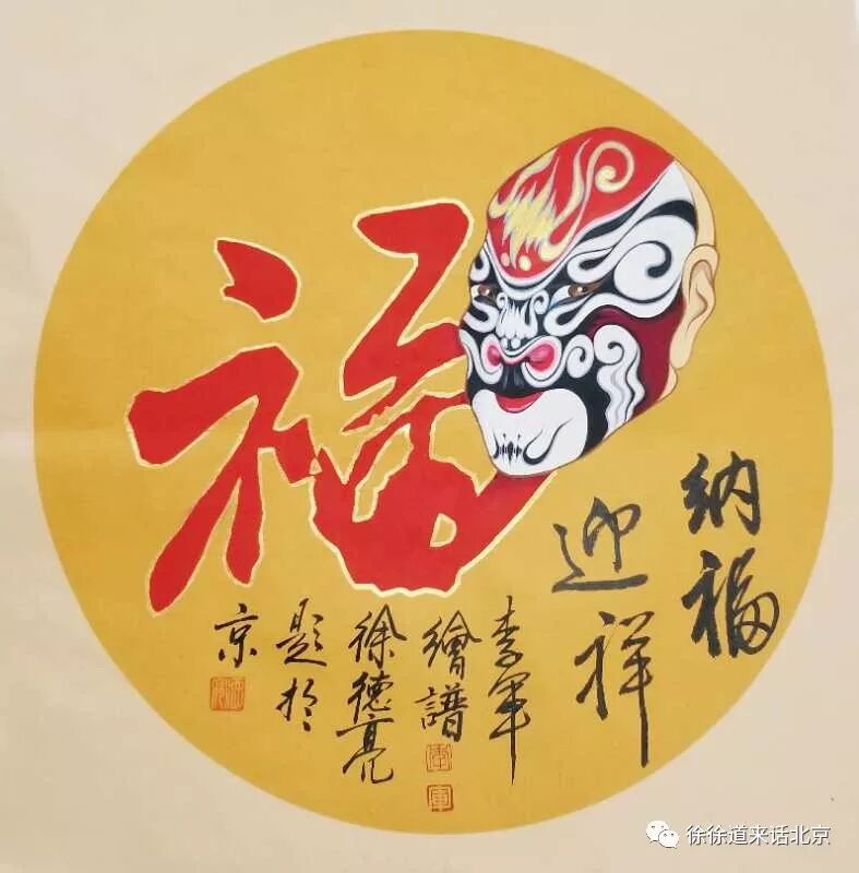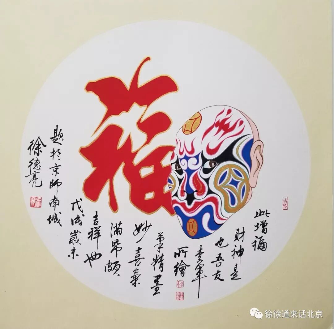 这次所绘是由一个增福财神脸谱和一个福字组成的一个整体的绘画作品,