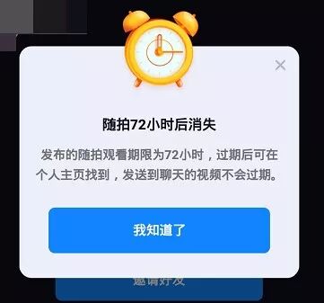 看到一个叫我的随拍,其实和微信的即刻视频一样,一定时间内会自动消失,这个是72小时后自动删除。