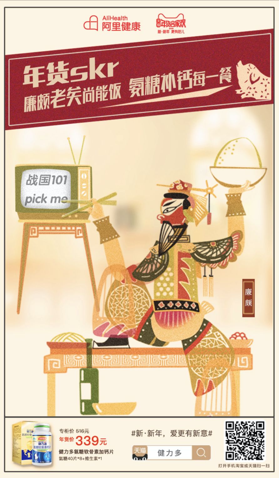 「 廉颇老矣尚能饭,氨糖补钙每一餐 」