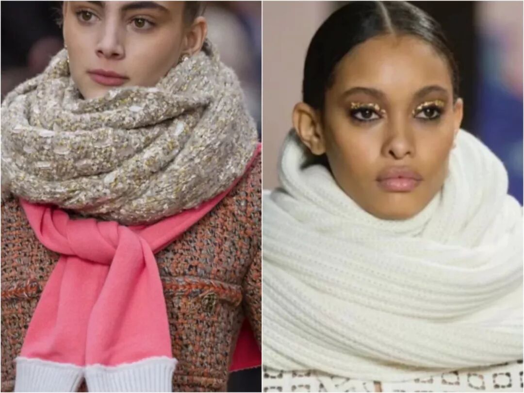 而这样的围巾也随着复古风的流行,近几年再次流行起来,Chanel、Akris 的2018秋冬秀场都出现了类似的款式,看上去很保暖。