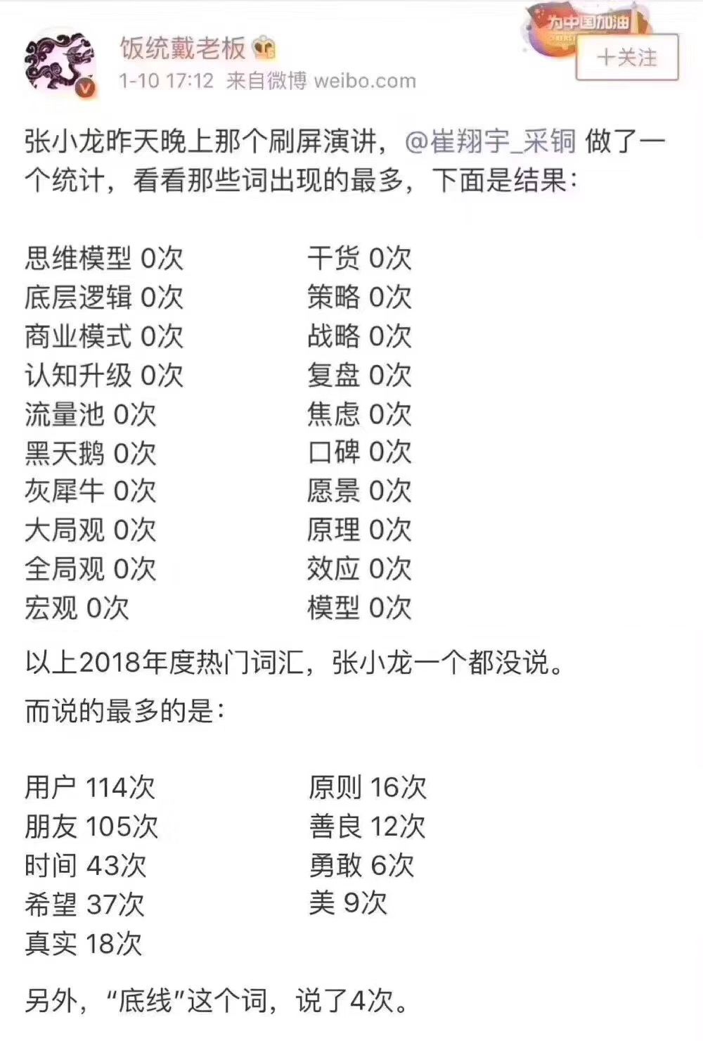 根据博主@崔翔宇_采铜 统计,在张小龙长达4小时的演讲里,别的企业家说的,他几乎没说。