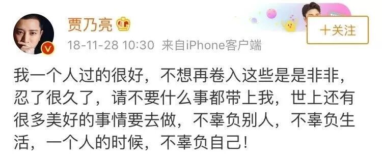 正因为舆情里对风流女人的零容忍,老贾在巨大的绿帽压力之下已经离了婚: