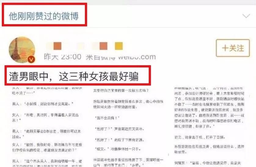 ▲更为搞笑的是,袁巴元还在微博点赞了一条渣男眼中,这三种女孩最好骗,言下之意,张雨绮被假富豪骗了……但网友们则讽刺他自认渣男,所以他很快就把这条删了……感觉老袁的智商也是有限哈……