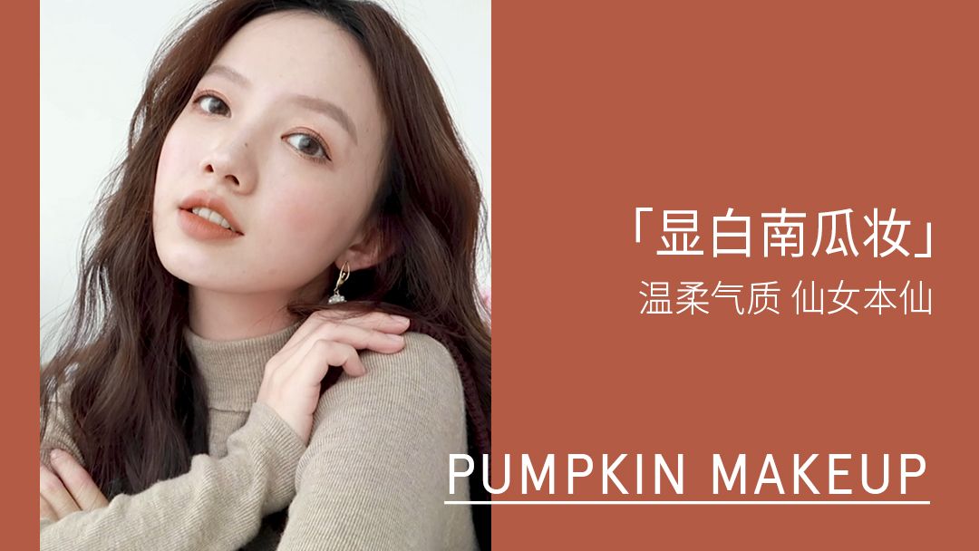 该妆容的重点是南瓜色系。所谓的南瓜色,是指除了橙色之外,实际从视觉上还能感受到红色的存在,以南瓜的橙黄色为基础,色调偏土色,明暗度较低。