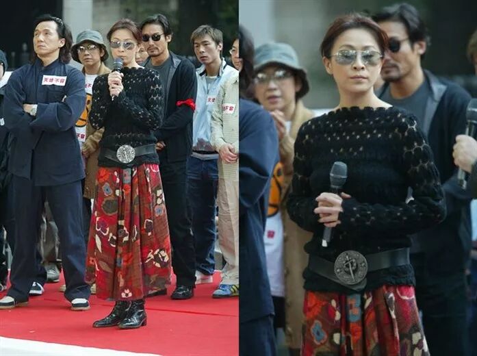 ▲2002年10月,香港演艺人为“裸照风波”举行声讨大会,刘嘉玲和梅艳芳、成龙、刘德华、张国荣、曾志伟等艺人一起走上街头,抨击社会暴力的穷凶极恶和无良媒体的助纣为虐,受害者刘嘉玲站在最前面。