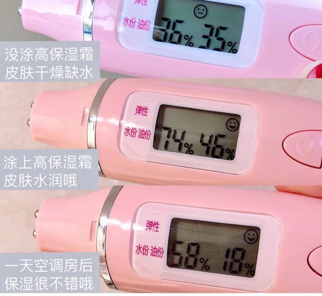 看到了么,使用之后皮肤水分和油分的比例显然平衡了不少,皮肤弹性也更好了,后续的锁水能力也非常棒,呆一整天空调房完全没有问题。