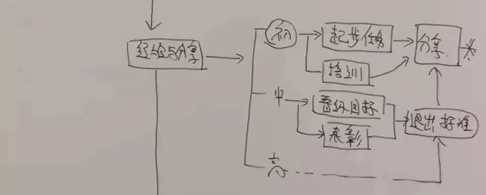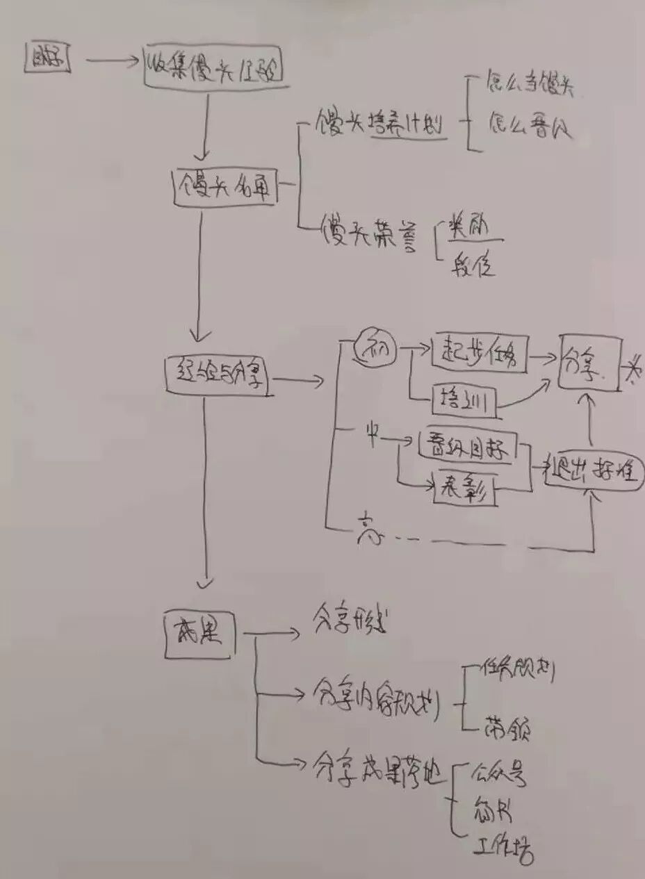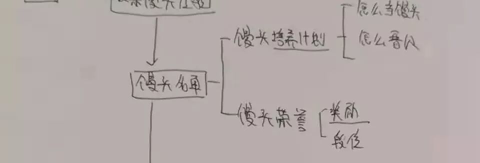 所以第二个阶段,我把馒头分成了初中高三个段位,这样有利于他们彼此借鉴,并且自循环,同时让才成为馒头的人,趁着热乎分享经验,制定好起步任务,然后再让中级和高级人员为他们做辅导和培训。