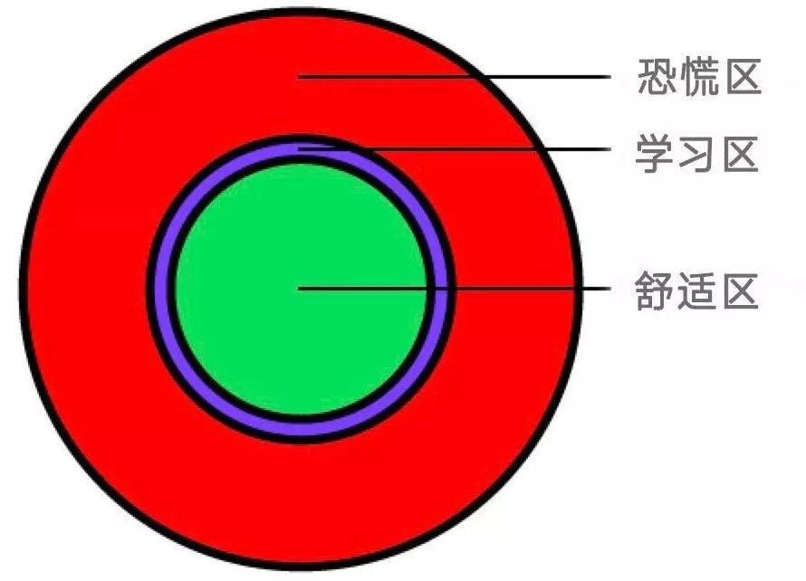 心理学家把我们可能面对的学习内容分成了三个区:舒适区、学习区和恐慌区。