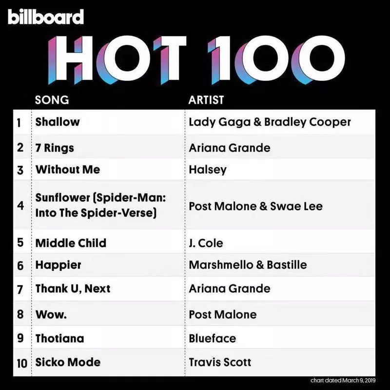 在发行半年之后,由 Lady Gaga 和 Bradley Cooper 演唱的《一个明星的诞生》电影主题曲《Shallow》终于不负众望,拿下了冠军头衔。