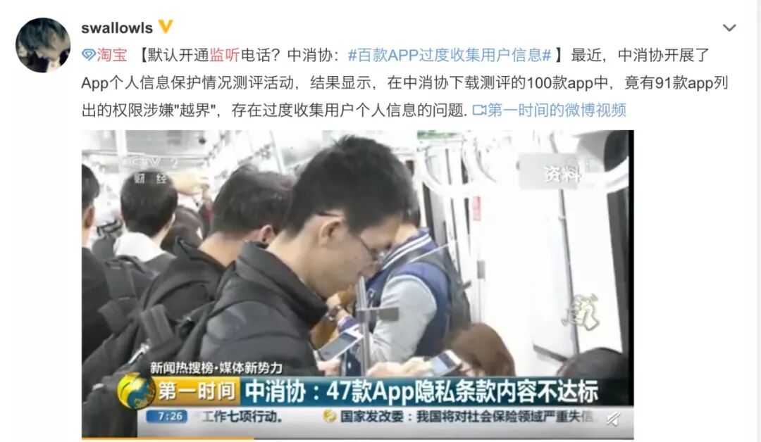 中消协(中国消费者协会)曾经开展过一个App个人信息保护情况测评活动,结果显示,100个app里有91个涉嫌权限越界,过度收集用户个人信息。也就是说,用这些app的时候,我们很可能等同于在裸奔。
