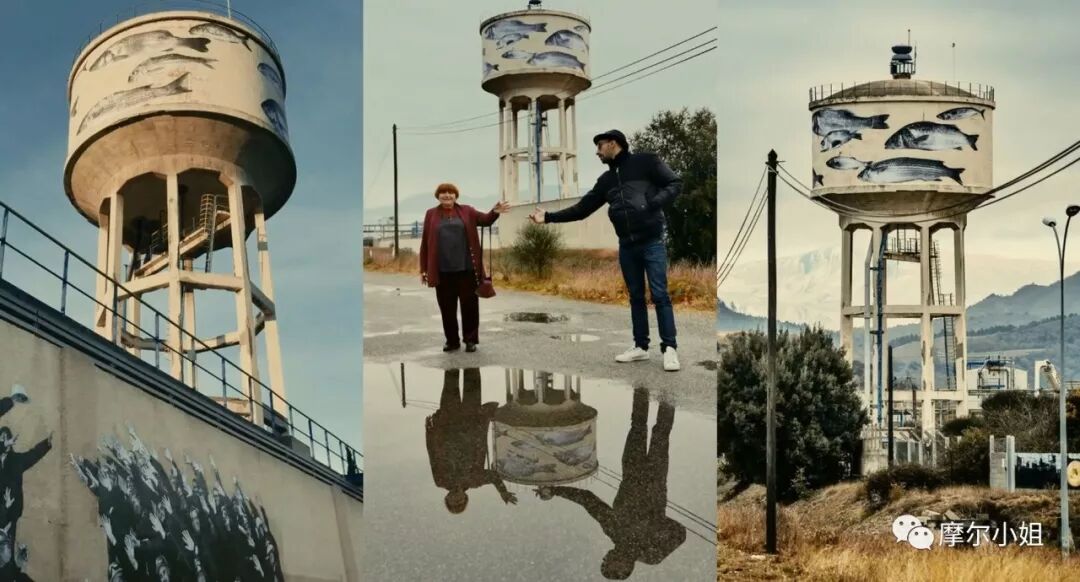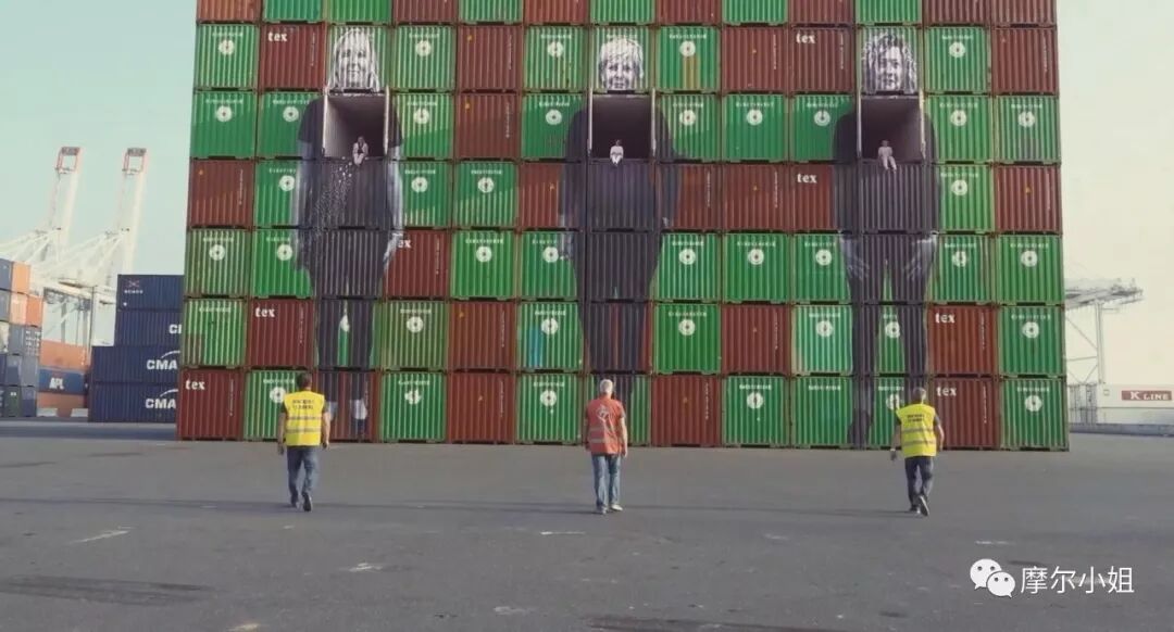 电影的尾声也非常精彩,瓦尔达邀请 JR 一起去拜访她的老朋友 —法国新浪潮导演代表之一的 Jean-Luc Godard戈达尔 。经过几小时的长途跋涉,等待他们的却是闭门羹。
