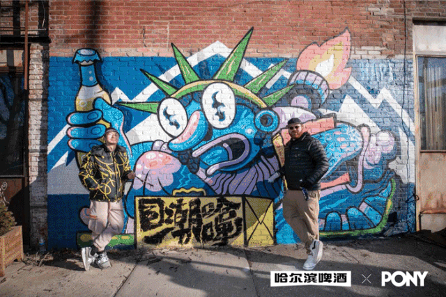 由朱敬一老师与纽约涂鸦师Birdcap,带着一群穿着印有“一起哈啤”羽绒服的模特集体“出逃”,并在布鲁克林街头完成了一幅玩味十足的涂鸦画作。