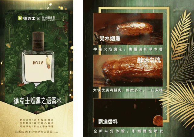 比如在德克士推出全新南美烟熏烧烤系列汉堡时,就和气味图书馆跨界联手,打造了一款烟熏味的香水。