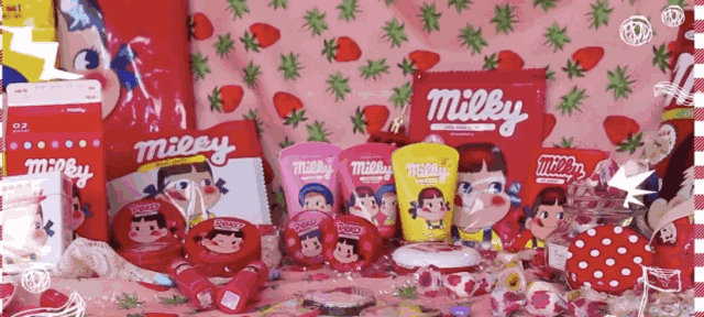 并且所有的产品都装在不二家的大袋子里,简直就是一个糖果大礼包。
