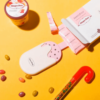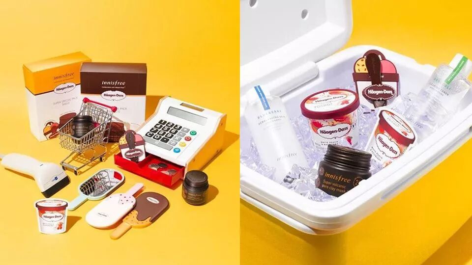 而哈根达斯和 Innisfree 的跨界合作,虽然采用的是雪糕礼盒的包装,但老实说还是在打着联名的旗号各卖各的。