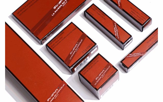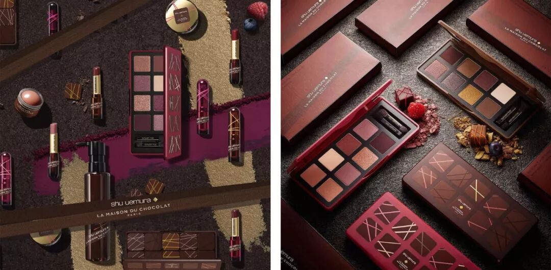 每年都会跨界合作的植村秀Shu uemura,在2018年就选择了和法国朱古力品牌 La Maison du CHocolat 合作,推出了包括唇膏、唇笔、眉笔、睫毛膏、卸妆油和香水在内的全新系列。