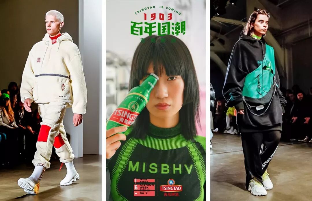 几日后,青岛啤酒也携手李晨和潘玮柏的潮牌NPC,合作亮相纽约时装周。