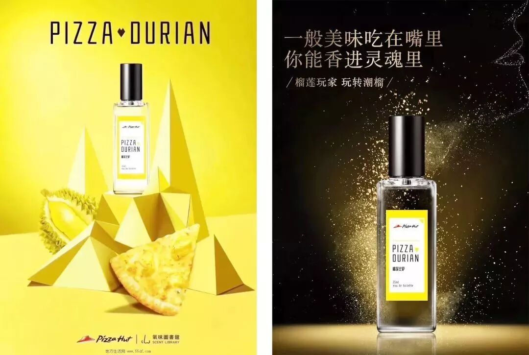 还和必胜客跨界联手推出了一款榴莲披萨味香水。