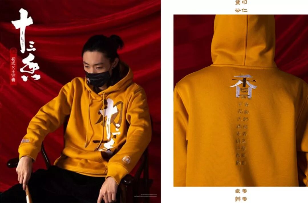 还有同样是经典酱料的王守义十三香,也在不久前携手中式潮牌代表初弎,跨界推出了联名定制款卫衣。