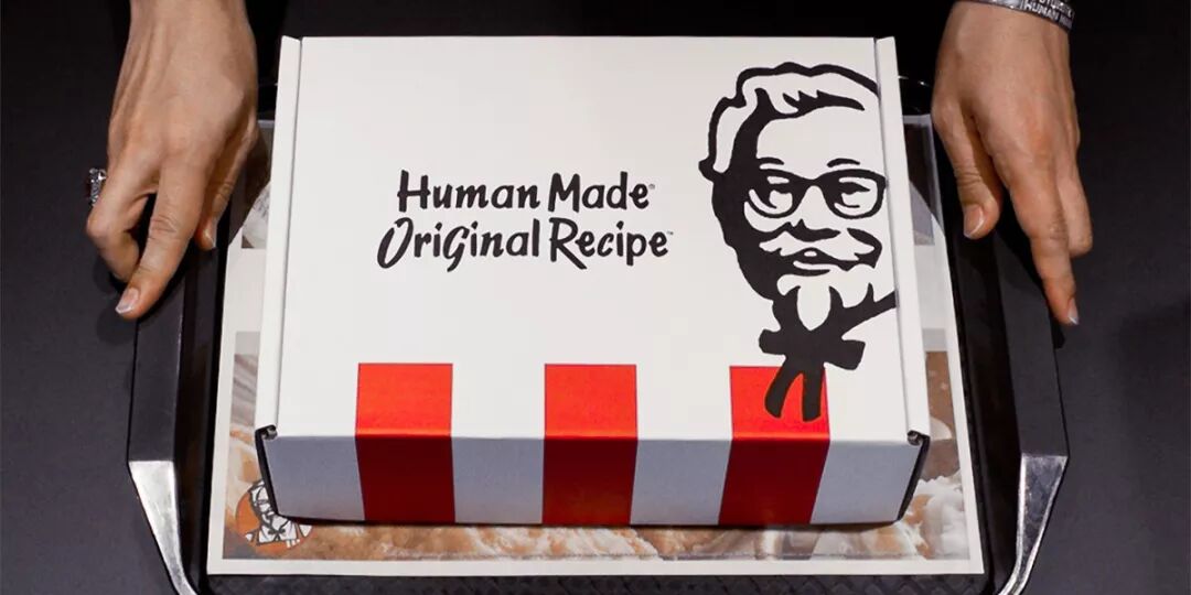除了这些国产餐饮品牌,2018年还有一个知名的年度跨界,就是快餐巨头肯德基与潮牌 Human Made 的跨界合作。