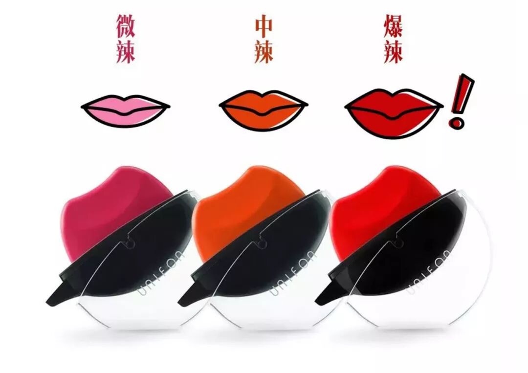 前段时间“最会玩的鸭子”周黑鸭,在用电音玩古诗词后,就以微辣、中辣和爆辣三种不同辣度的色调为灵感,同御泥坊跨界联名推出了限定版“一吻定情小辣吻咬唇膏”。