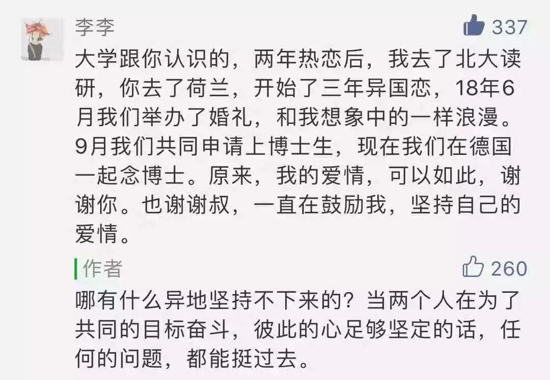 然后是另一个故事,来自前几天的留言,特别打动我: