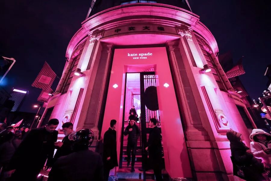 这座被粉色包裹的建筑实为外滩中实大厦,举行着由 kate spade new york 所主办的“Unlock Your Heart”春季派对。