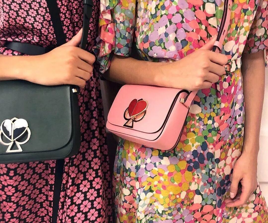 黑桃一直以来都是 kate spade new york 的标志性元素,只不过这次,它被 Nicole 从“幕后”搬到了“台前”般,如藏头诗般出现在了 2019 春季系列的包袋及成衣之上。