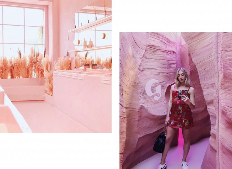 洛杉矶的粉色小众美妆Glossier 以“粉色羚羊谷”为灵感,在闭店装修后,重新打造出一个粉色王国。