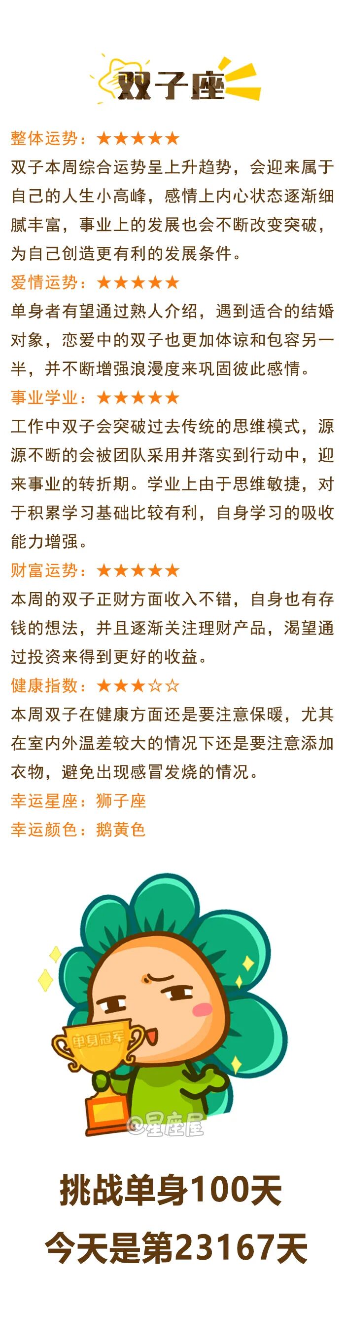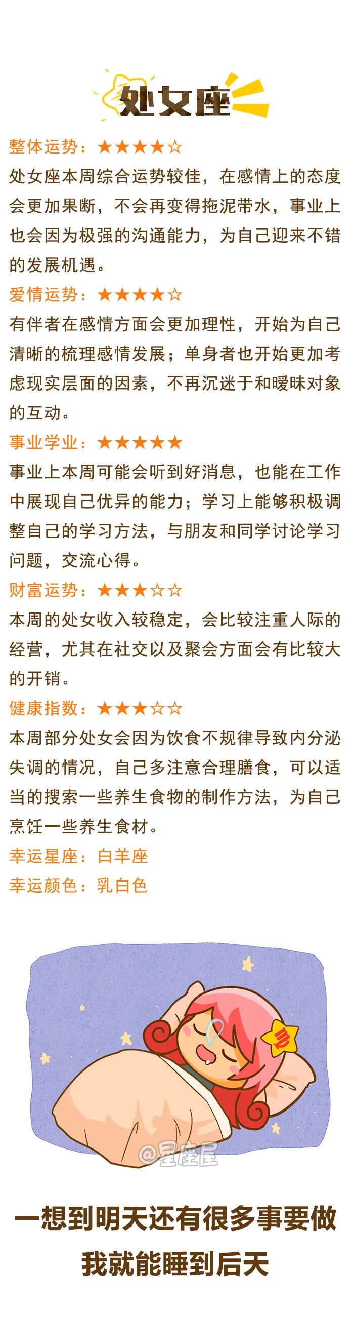 - 来源|紫微黄历网新一周的到来,你的运势会发生怎样的变化?新的机会是否来袭?又有哪些顾虑和期待呢?会得到幸运之神的眷顾吗?下面一起来看看接下来一周的运势吧。白羊座 幸运色彩: 石榴红 幸运日: 星期一 ...
