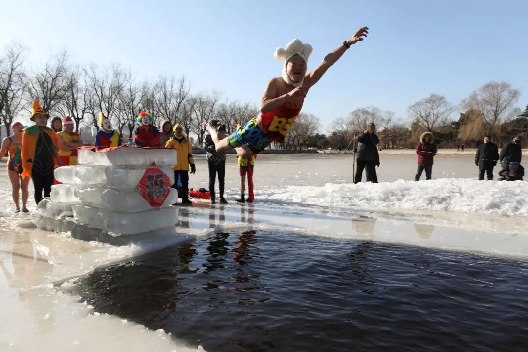 2018-02-16,辽宁沈阳。冬泳爱好者盛装搞怪迎新春。作者:行者