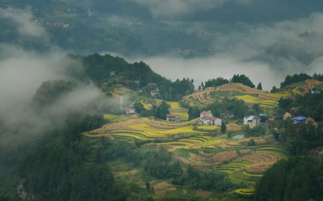 2018-09-14,湖北利川。长坪的梯田隐现于云雾之间,在秋收的季节显得格外迷人。作者:吴琼