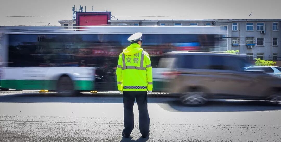 2018-04-07,河南洛阳。川流不息的路旁,一名交警守护着行车安全。作者:黄政伟