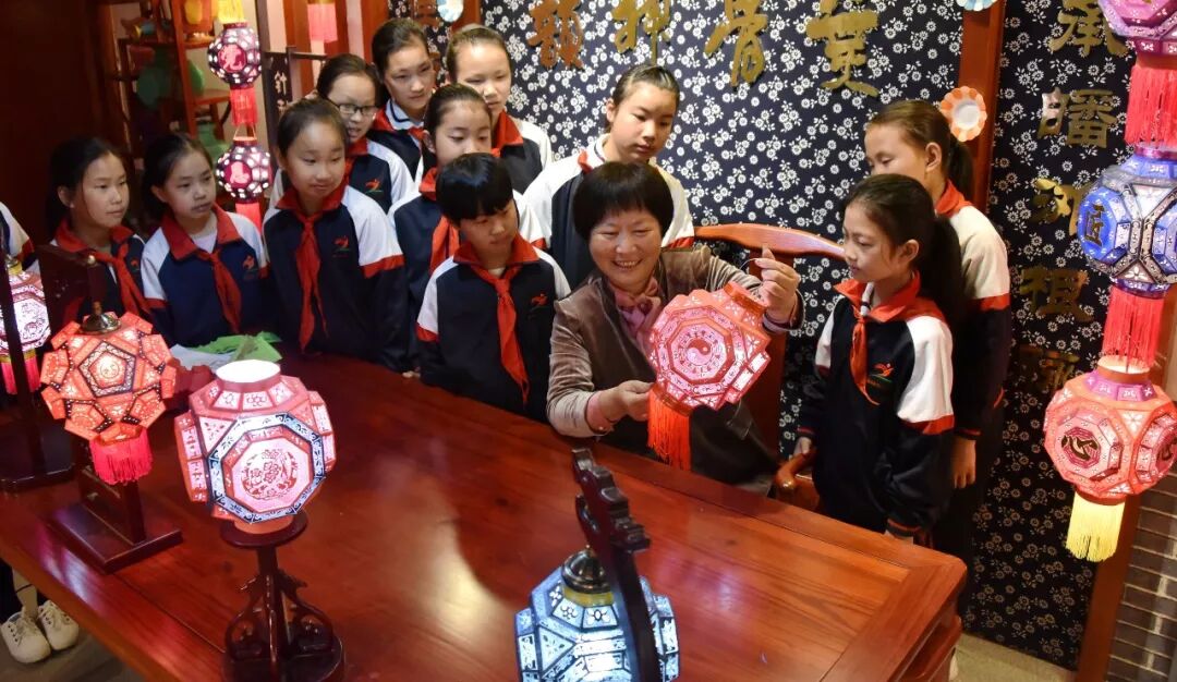 2018-04-30,浙江仙居。非遗传人向学生传授针刺无骨花灯制作技艺。作者:王华斌