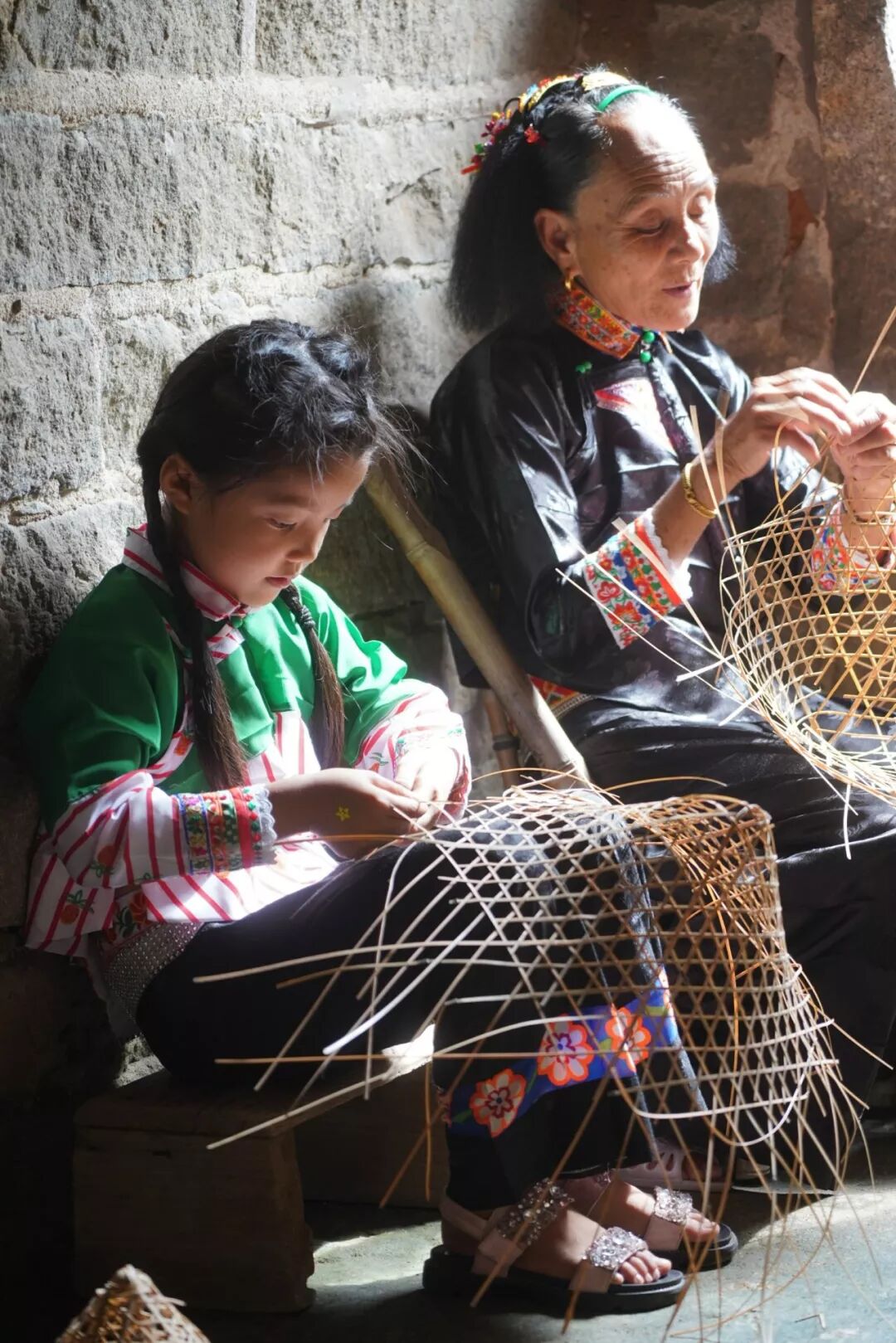 2018-07-03,福建惠安。惠安女孩与奶奶一起编织斗笠。作者:游龙