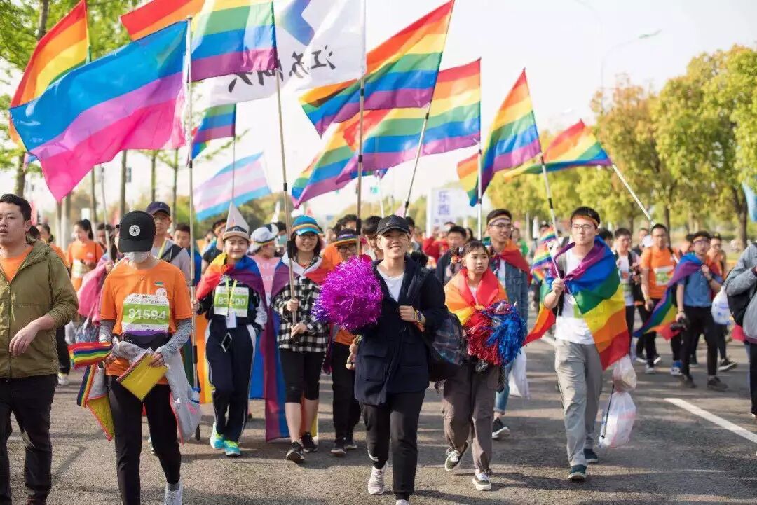 2018年,成都、南京等地的马拉松比赛场上,出现了许多彩虹团体。Ta们以彩虹马拉松、快闪、求拥抱等形式在马拉松的比赛中展现了最美的自我,提高了性少数群体的社会能见度。