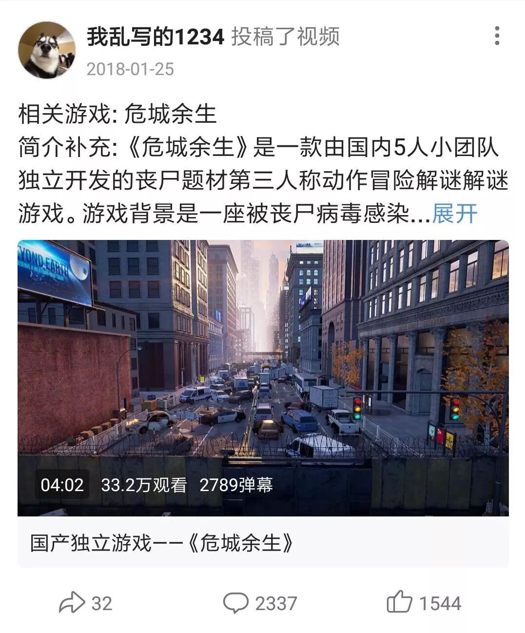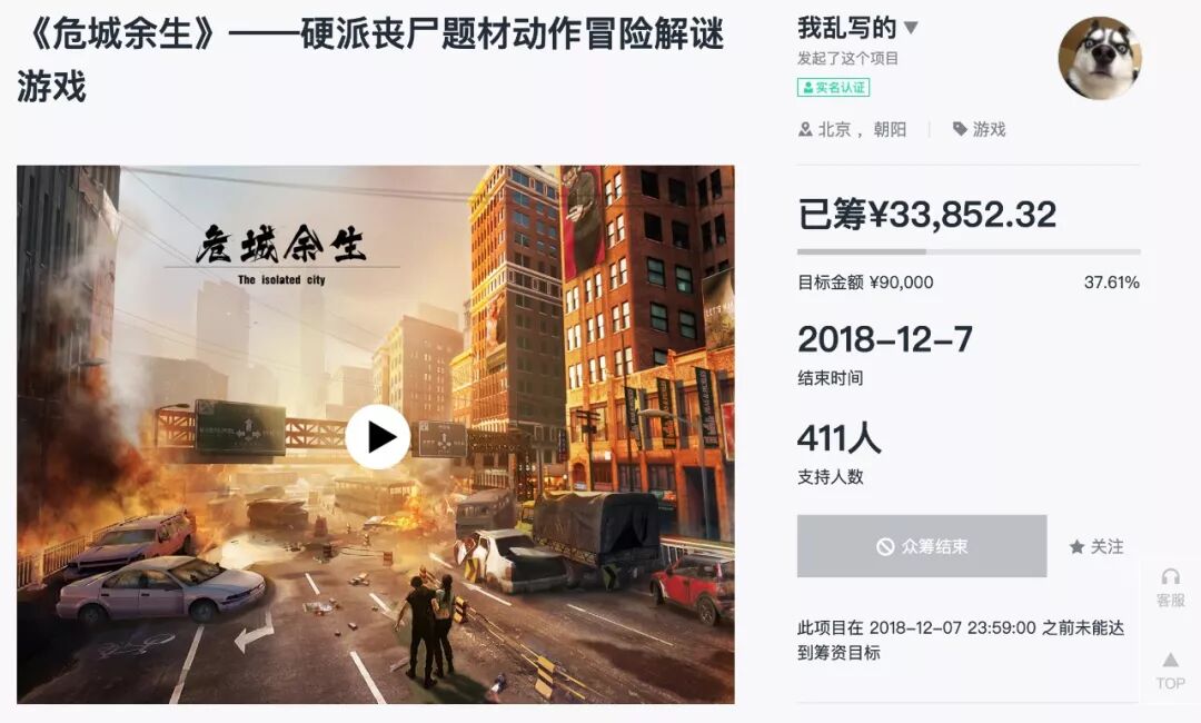 众筹是潘翔的最后一根稻草。正如前文所述,因为《危城余生》的宣传视频曾经在B站获得过不错的效果,所以这次他也把B站当成了最重要的导流入口,更何况丧尸题材游戏的视频还可能无法通过其他平台的审核。但后来他表示,第二版视频可能遭到了平台的限流。