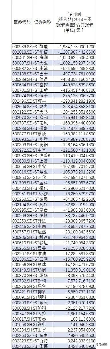 1、2018年三季报净利润亏损及接近亏损的`ST有: