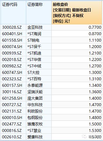 以上股票目前低于1.5元,存在着低于1元的风险。