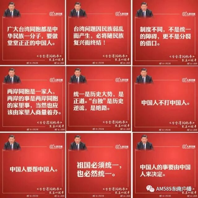 - 评论:推进和平统一划时代文件 - 来自AM585东南广播 - / 10:18 1月2日,中共中央总书记、国家主席、中央军委主席习近平在《告台湾同胞书》发表40周年纪念会上发表了重要讲话,引起了海峡两