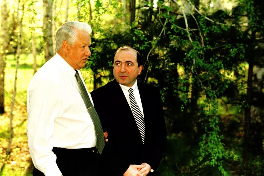 1999年,鲍里斯·叶利钦和俄罗斯商人别列佐夫斯基在俄罗斯。 图片来源:SHONE/GAMMA-RAPHO/GETTY IMAGES