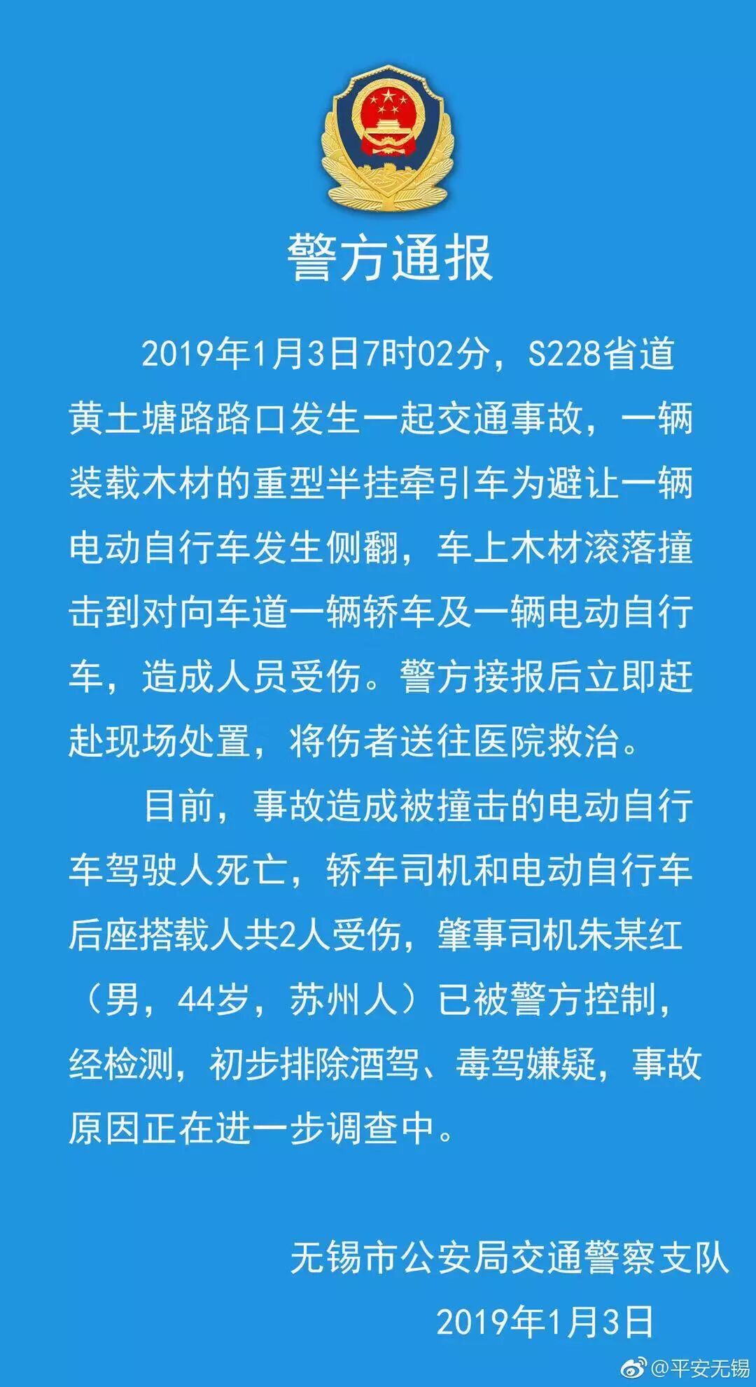 - 来源:扬子晚报 记者丁波、 南京零距离(lingjuli2002)、@平安无锡 版权归原作者所有 如有侵权请联系我们 今天早上7点01分,在S228省道黄土塘段发生了一起车祸,一辆载有木材的货车