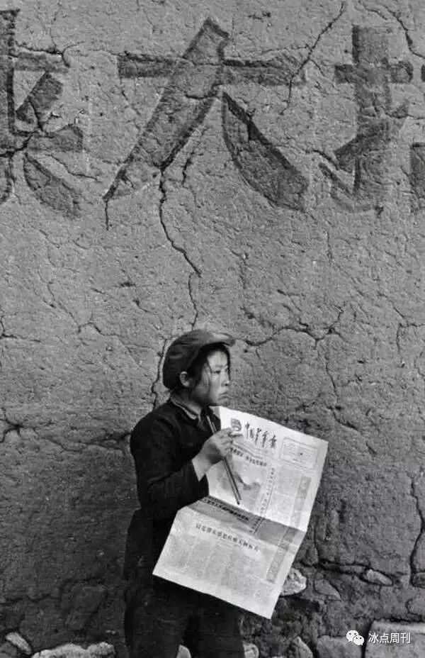 1965年,山西农村,拿着《中国青年报》的女青年。法国摄影家马克·吕布作品