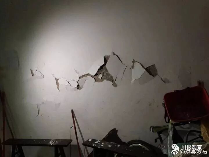据当地政府相关部门报告:珙县底洞镇、玉和乡、上罗镇有房屋垮塌现象,长宁县双河镇有房屋梭瓦、裂纹现象,上罗镇政府办公楼有裂纹,底洞镇出现10立方米的土石方滑落。